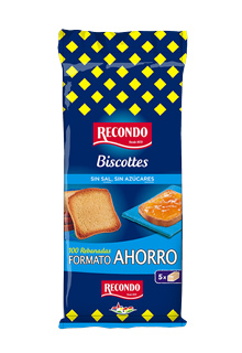 Cuidate cada mañana con los Biscottes Sin Sal Añadida y Sin Azucares Añadidos de Recondo. Un desayuno práctico, crujiente y ligero para cada mañana.